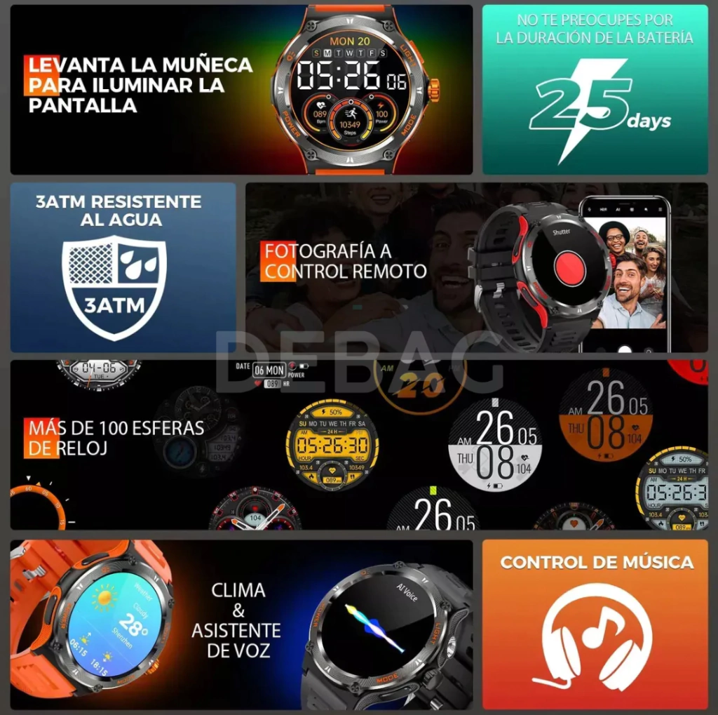 La cuenta de pasos y/o kilómetros puede variar, ya que los Smartwatches no cuentan con GPS integrado. Las mediciones son aproximadas. Lo mismo ocurre con las mediciones de salud. En caso de necesitar algo preciso consultar los relojes disponibles dentro de nuestra gama premium.